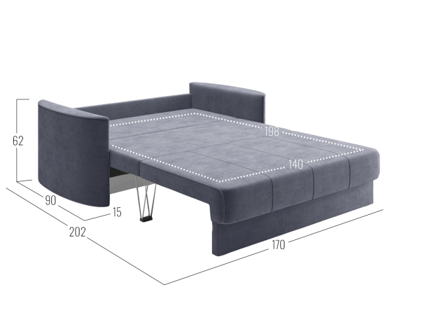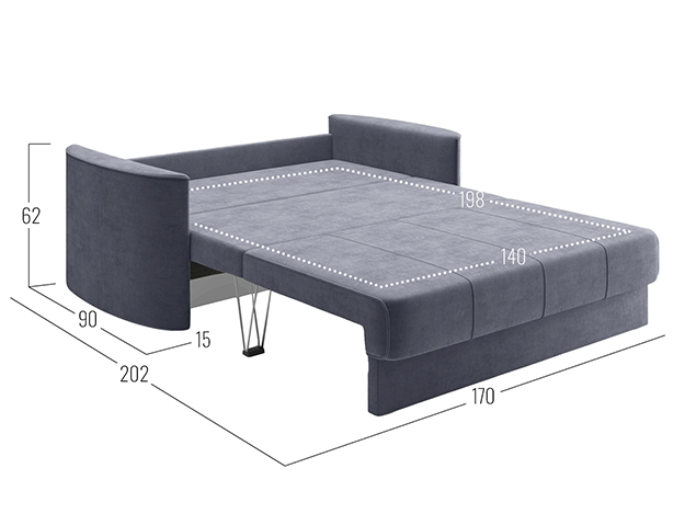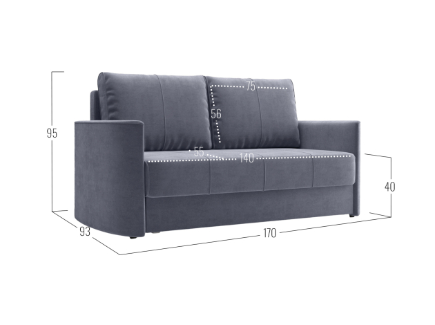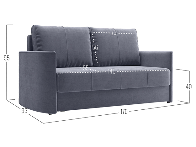 - Посадочное место без подушек (ВхГ): 140 х 77 см.
