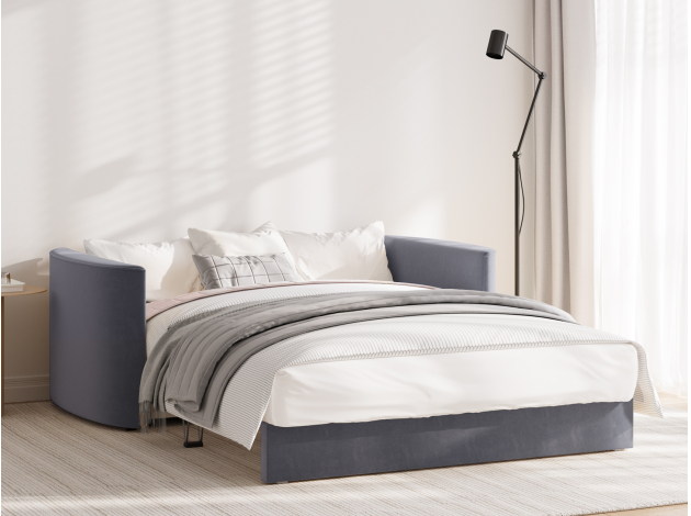 Прямой диван Айви Мини — отличный выбор для квартиры-студии или небольшой гостиной. Модель со всех сторон выглядит эстетично, поэтому ее можно установить в любой части комнаты. В качестве декора выступает кант в тон обивки. Такой дизайн смотрится очень актуально в любом современном интерьере. При необходимости диван легко раскладывается, образуя комфортное место для сна, а специальная планка защищает от контакта со стеной. Для постельных принадлежности или сезонных вещей предусмотрен бельевой короб.