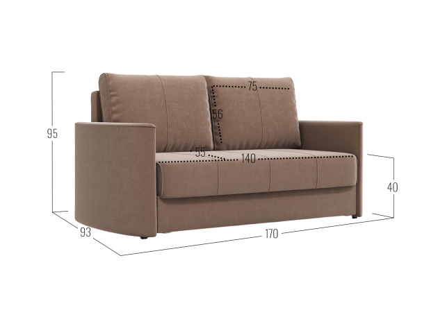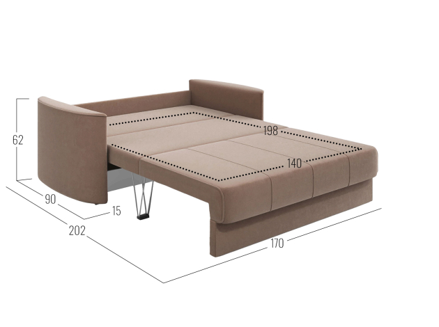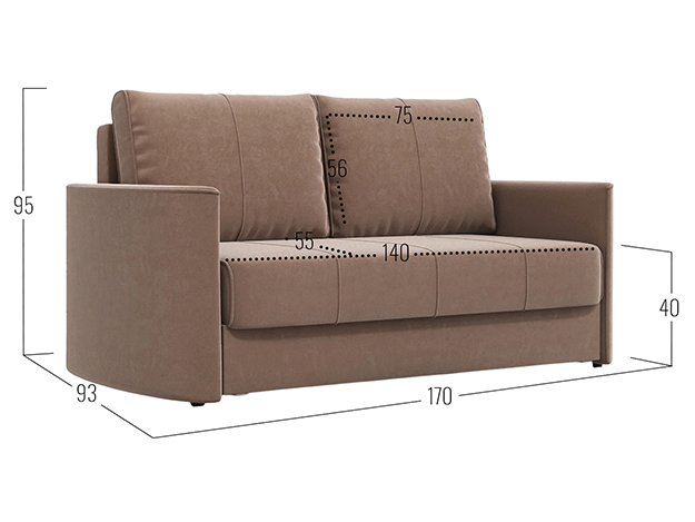 - Посадочное место без подушек (ВхГ): 140 х 77 см.