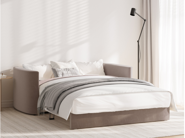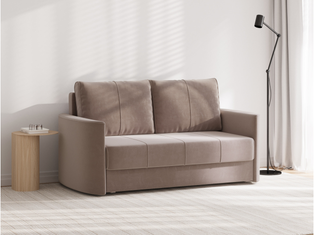 Прямой диван Айви Мини — отличный выбор для квартиры-студии или небольшой гостиной. Модель со всех сторон выглядит эстетично, поэтому ее можно установить в любой части комнаты. В качестве декора выступает кант в тон обивки. Такой дизайн смотрится очень актуально в любом современном интерьере. При необходимости диван легко раскладывается, образуя комфортное место для сна, а специальная планка защищает от контакта со стеной. Для постельных принадлежности или сезонных вещей предусмотрен бельевой короб.