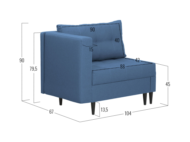 Прямой диван Астен мини Синий, рогожка Универсальное