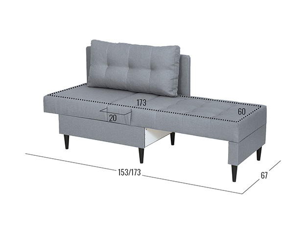 Прямой диван Астен мини органично дополнит интерьер любой жилой комнаты, кухни или прихожей. В сложенном виде модель занимает очень мало пространства, при этом раскладывается вдоль стены, поэтому отлично подходит для узких помещений. Спальное место можно регулировать с помощью дополнительной подушки, которая идет в комплекте. Небольшой бельевой короб — практичное дополнение модели. Объемная подушка делает отдых удобнее, а высокие ножки из массива березы создают стильный акцент в интерьере.
