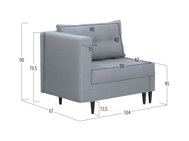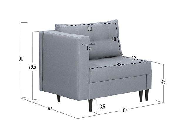 - Посадочное место без подушки (ШхГ): 88 х 60 см.