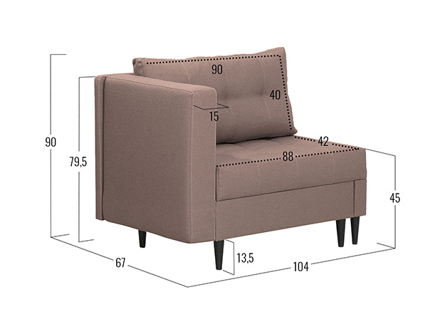 - Посадочное место без подушки (ШхГ): 88 х 60 см.