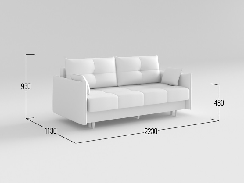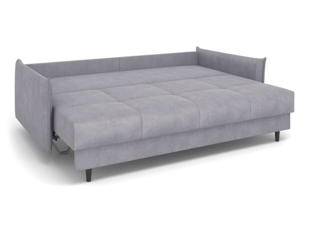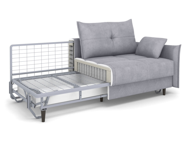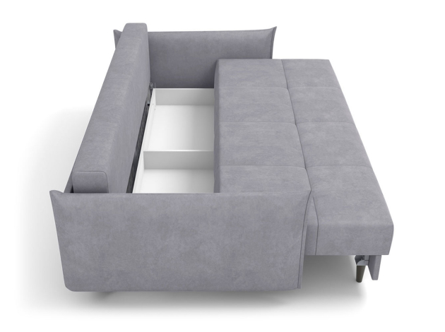 Со всех сторон используется лицевая обивка, поэтому модель можно установить в любой части комнаты и использовать для зонирования пространства. Благодаря съемному чехлу легко поддерживать чистоту дивана и при желании менять его цвет. Высокие ножки упрощают уборку: под диваном свободно маневрирует робот-пылесос. Для хранения постельных принадлежностей предусмотрен вместительный короб для белья.
