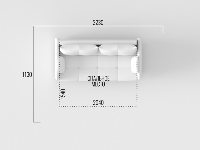 - Посадочное место без подушек (ШхГ): 204 х 86 см.