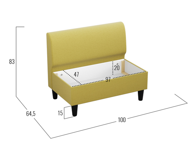 Прямой диван Берн идеален для небольшой зоны отдыха на кухне, в детской, в офисе или кафе. Компактная модель сэкономит пространство без ущерба для комфорта. Под сиденьем расположен короб для хранения, что делает диван еще практичнее. Минималистичный дизайн удачно встраивается в разные интерьерные решения.