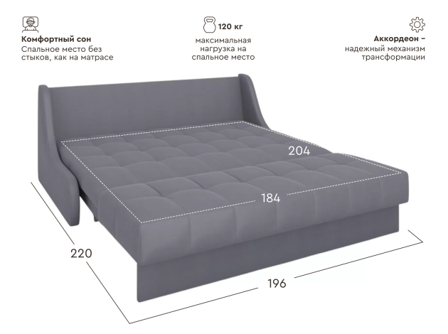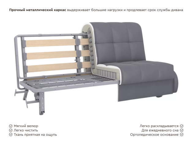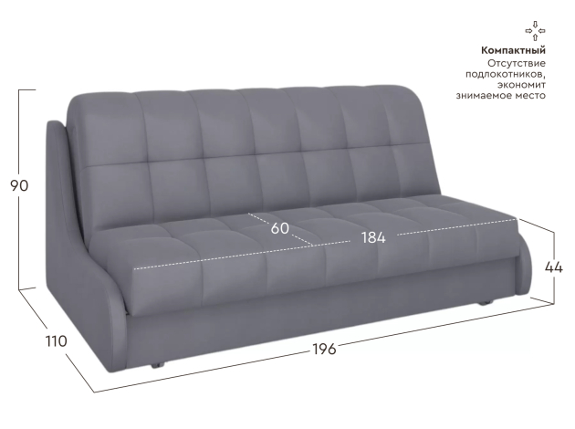Прямой диван Бранд Антрацит, велюр 184х204 см Без ящика