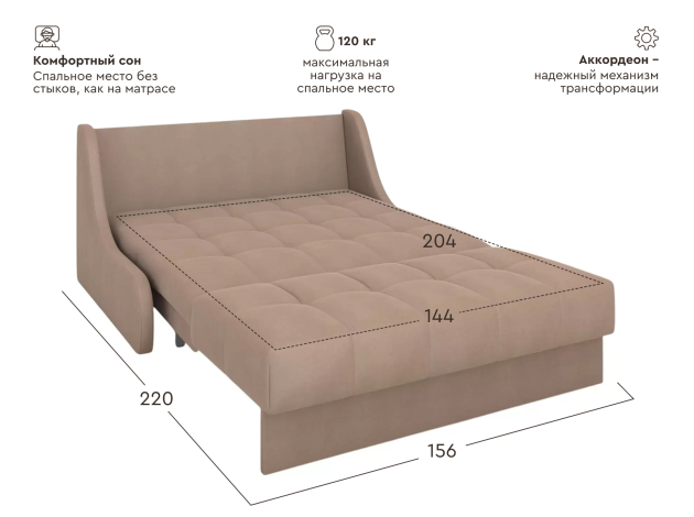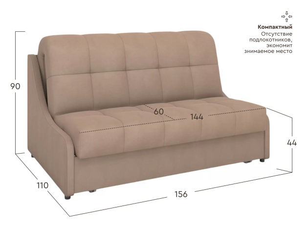Прямой диван Бранд Бежевый, велюр 144х204 см Без ящика