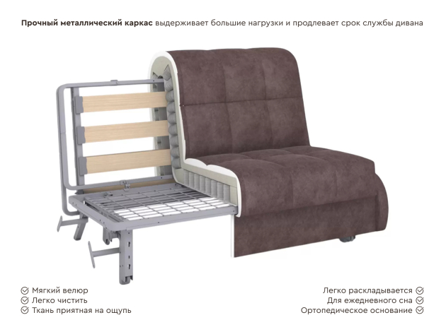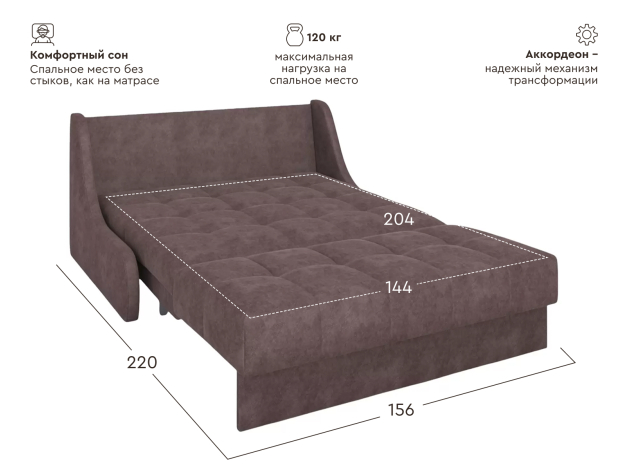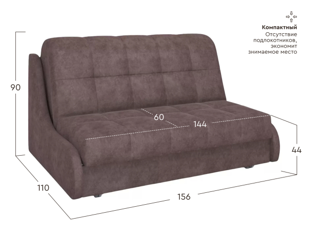 Прямой диван Бранд Коричневый, велюр 144х204 см Без ящика