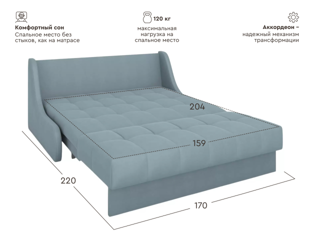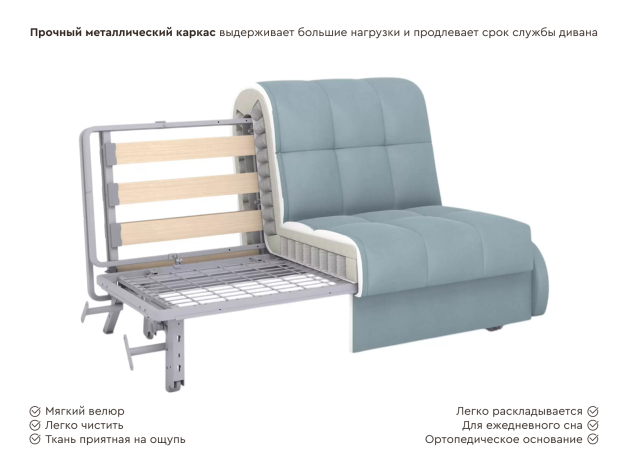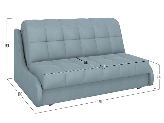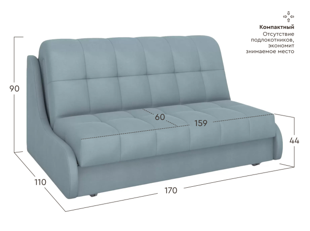 Прямой диван Бранд Серо-голубой, велюр 159х204 см Без ящика