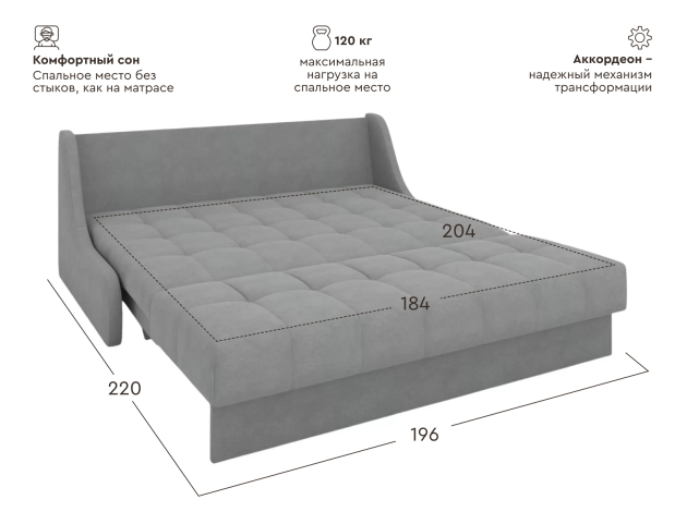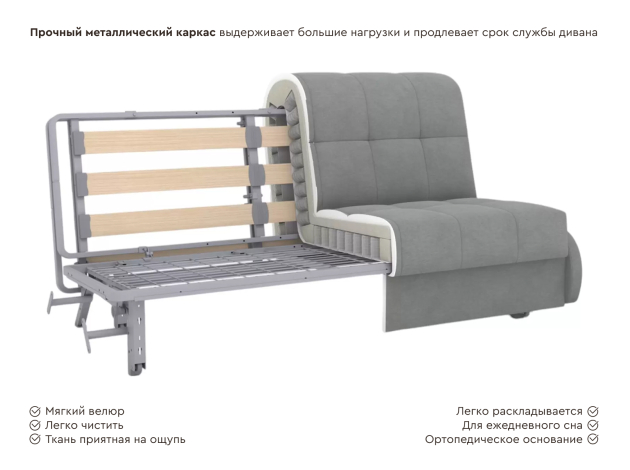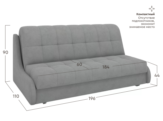 Прямой диван Бранд Серый, микрошенилл 184х204 см Без ящика