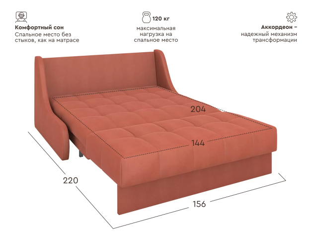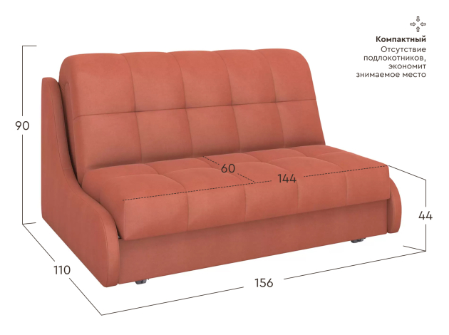 Прямой диван Бранд Кирпичный, велюр 144х204 см Без ящика