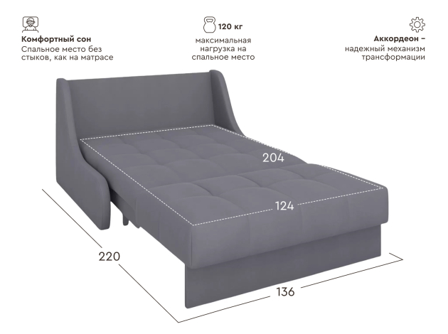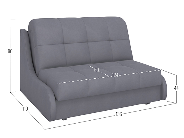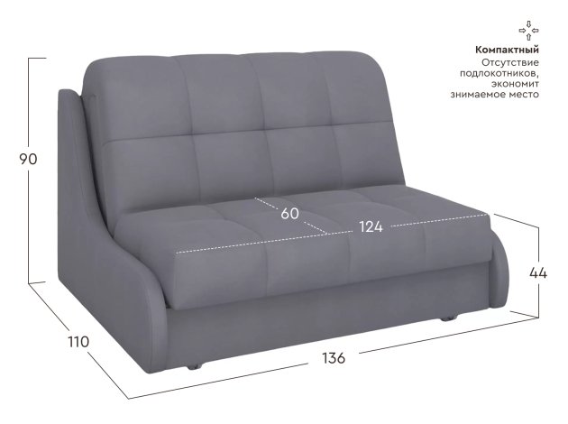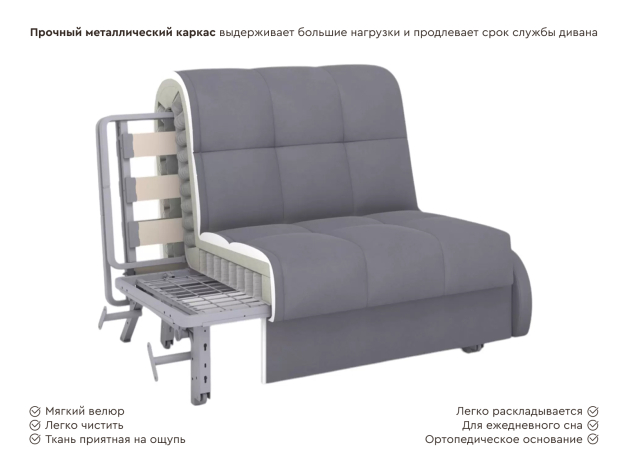Прямой диван Бранд Антрацит, велюр 124х204 см С ящиком