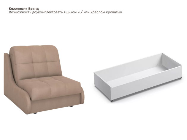 Прямой диван Бранд Бежевый, велюр 184х204 см С ящиком