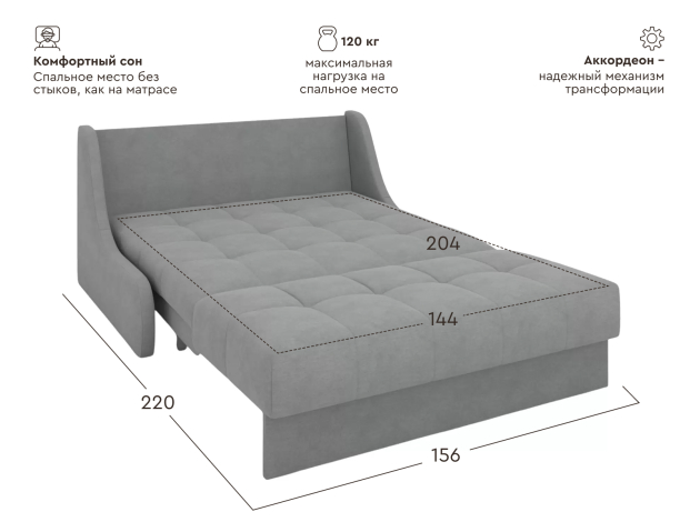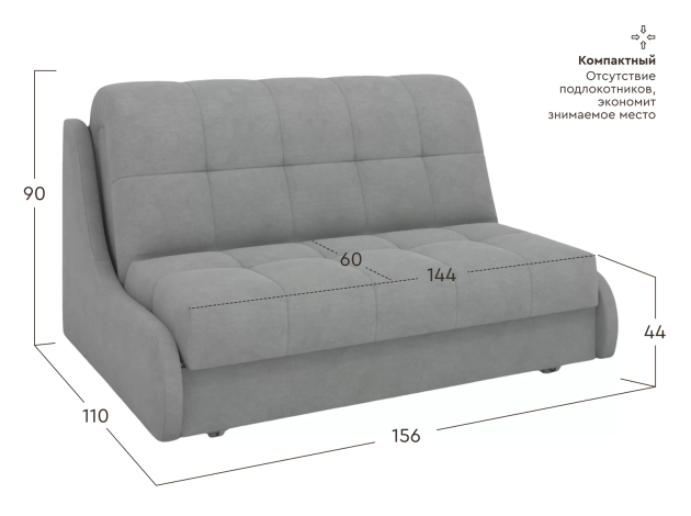Прямой диван Бранд Серый, микрошенилл 144х204 см С ящиком