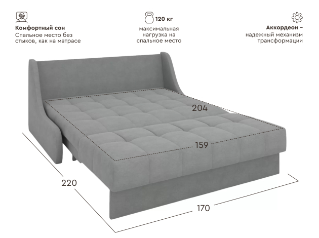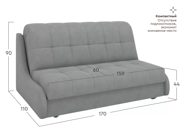 Прямой диван Бранд Серый, микрошенилл 159х204 см С ящиком