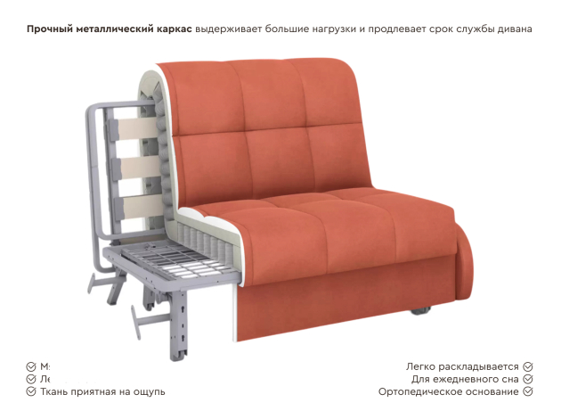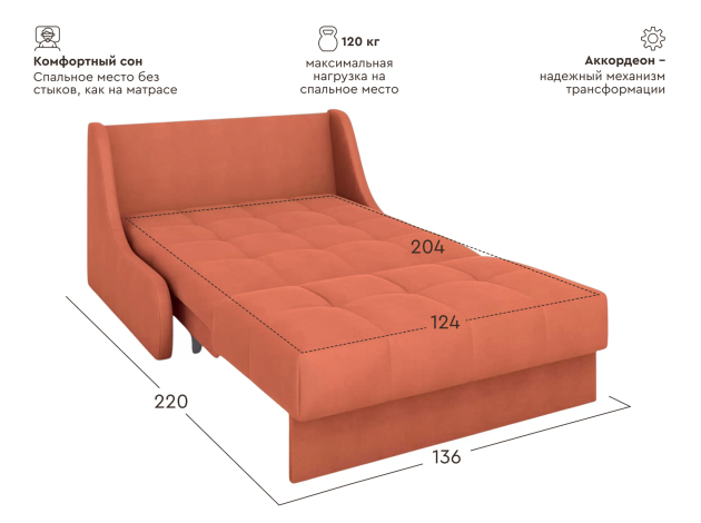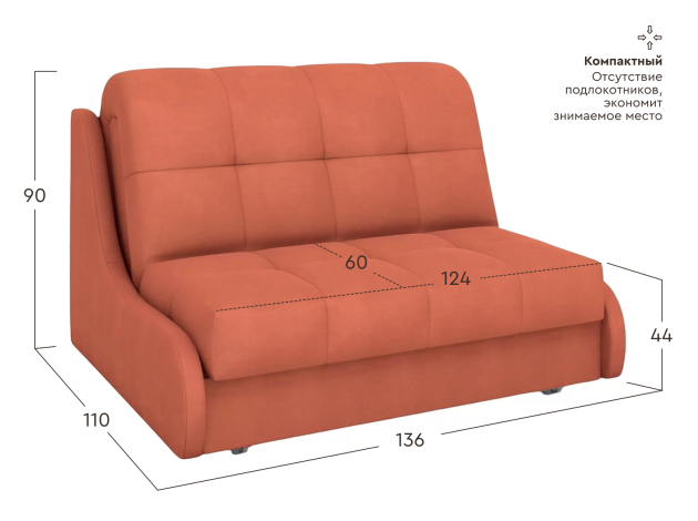 Прямой диван Бранд Кирпичный, велюр 124х204 см С ящиком