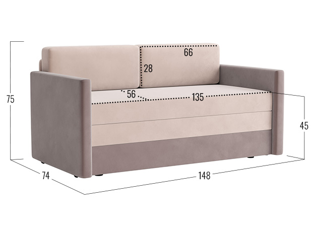 - Посадочное место без подушек (ШхГ): 135 х 71 см.