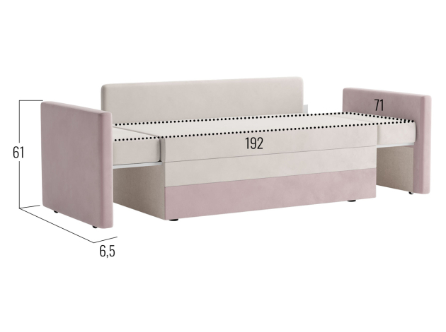 - Размер спального места с раздвинутыми боковинами (ШхГ): 71 х 192 см.