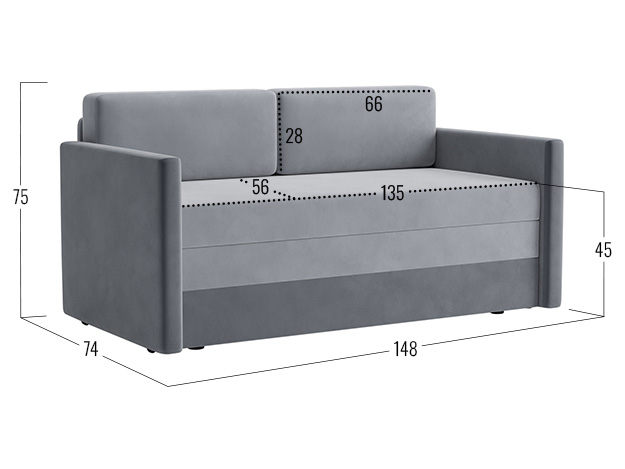 - Посадочное место без подушек (ШхГ): 135 х 71 см.