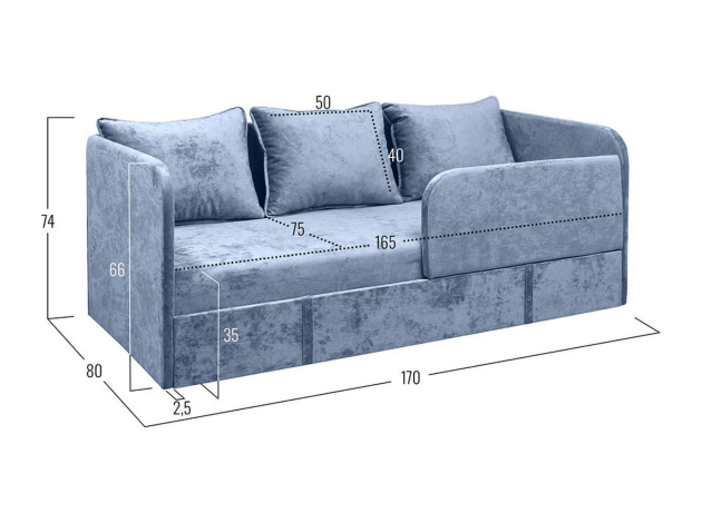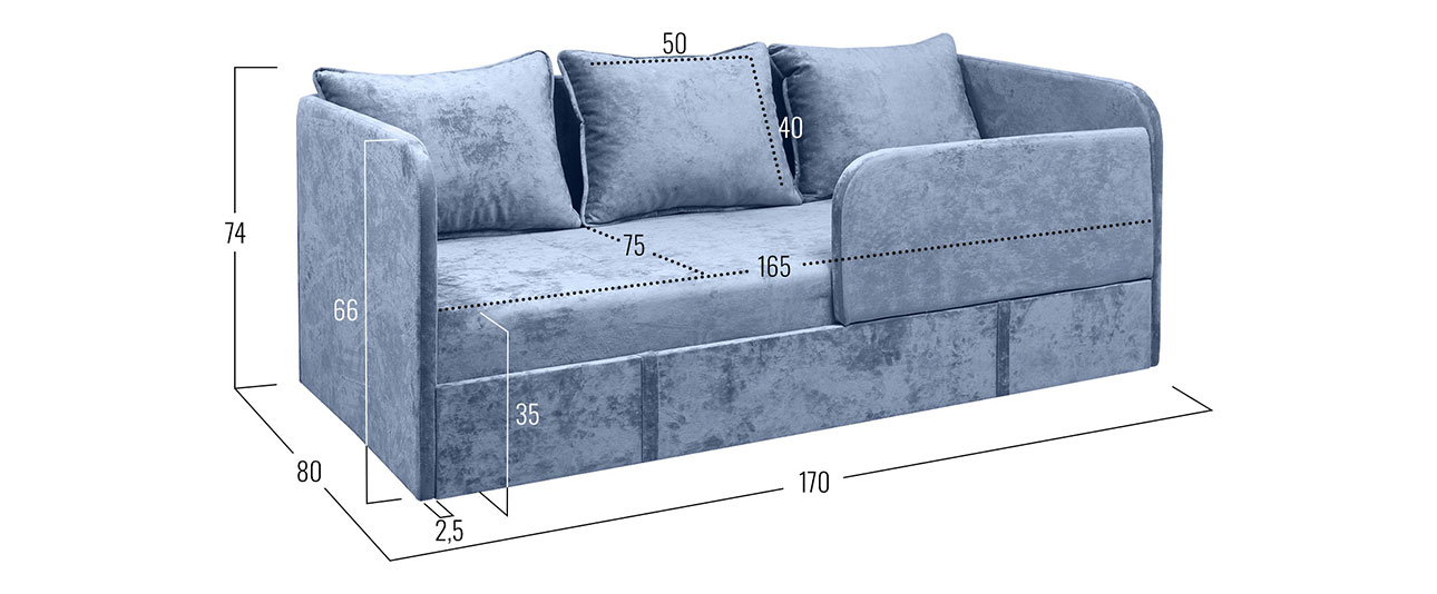 Прямой диван Дарси Серо-голубой, велюр Справа