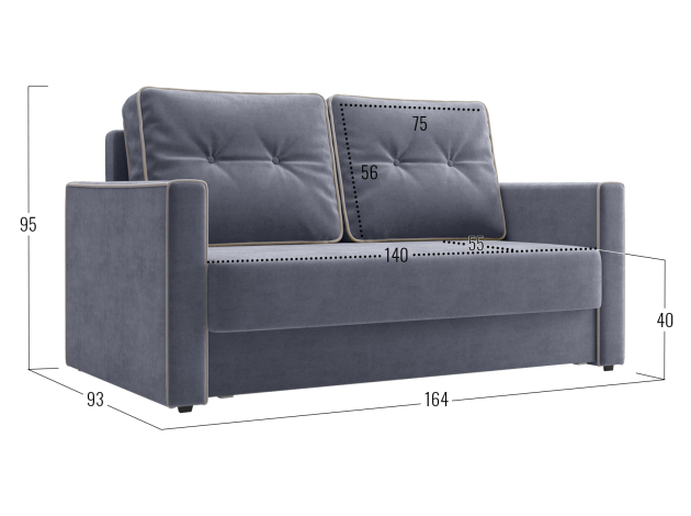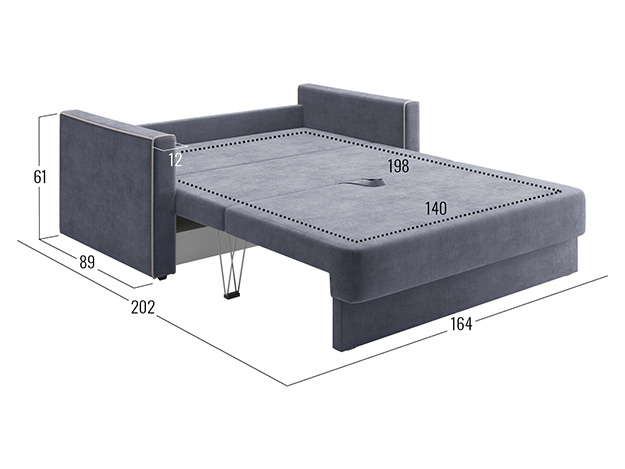 - Посадочное место без подушек (ШхГ): 140 х 77 см.
