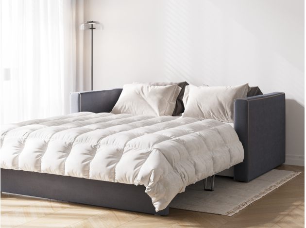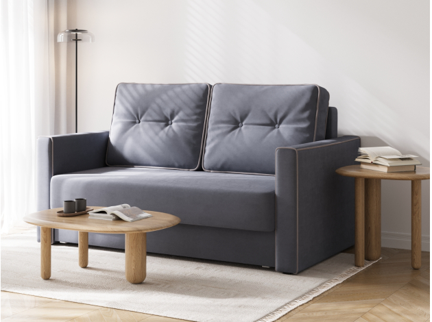 Прямой диван Лагос Мини легко поместится в гостиной, детской или квартире-студии. Современный облик подчеркивает декоративный кант по периметру. Диван со всех сторон выглядит эстетично, поэтому его можно поставить в любой точке комнаты. Благодаря надежному механизму трансформации он легко раскладывается, превращаясь в удобную кровать. Небольшой бельевой короб — практичное решение для хранения любых нужных вещей. В сложенном виде модель очень комфортна для отдыха благодаря объемным подушкам и мягким подлокотникам.