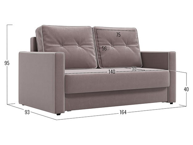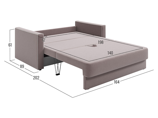 - Посадочное место без подушек (ШхГ): 140 х 77 см.