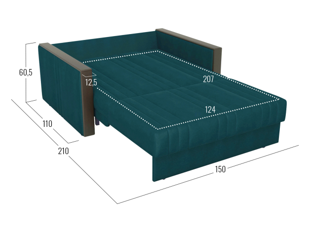 Прямой диван Фортис Изумрудный, велюр 124х207 см Без ящика