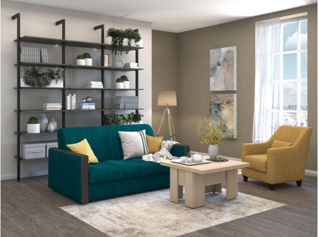 Прямой диван Фортис Изумрудный, велюр 144х207 см Без ящика