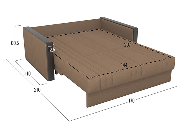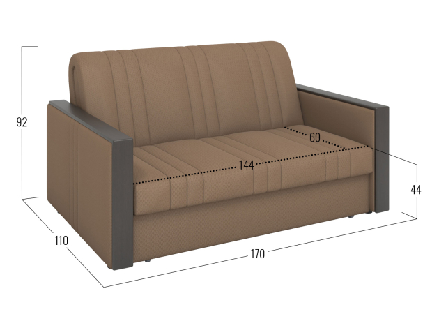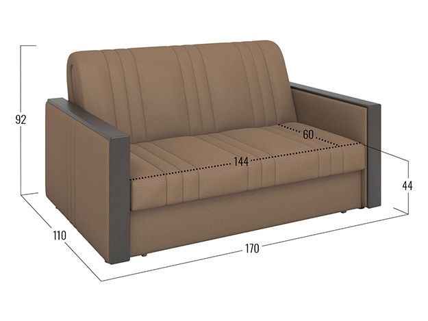 Прямой диван Фортис Кофе, велюр 144х207 см Без ящика