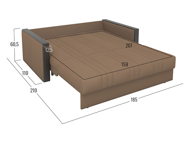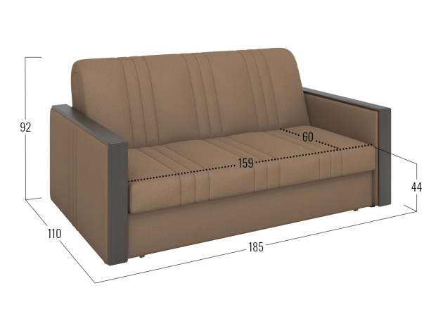 Прямой диван Фортис Кофе, велюр 159х207 см Без ящика