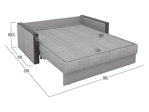 Прямой диван Фортис Стальной, велюр 159х207 см Без ящика