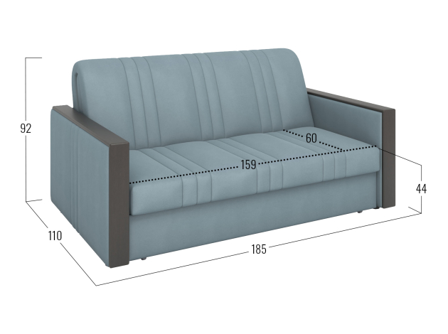 Прямой диван Фортис Серо-голубой, велюр 159х207 см С ящиком