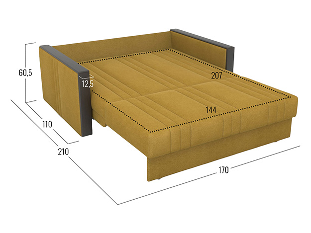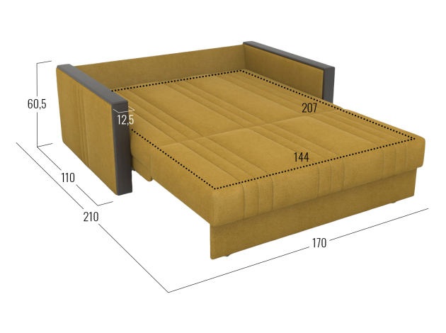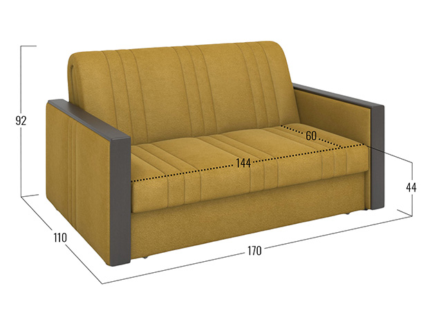 Прямой диван Фортис Горчичный, велюр 144х207 см Без ящика