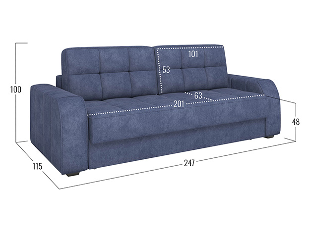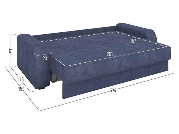 - Посадочное место без подушек (ШхГ): 201 х 88 см.
