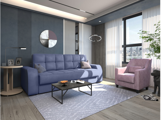 Прямой диван Хаммер — комфортабельная модель с безупречным дизайном, который прекрасно подходит для разных интерьерных стилей. Лаконичный облик дополняют декоративная стежка и кант в тон основной ткани. Приспинные подушки и широкие подлокотники позволяют расположиться с максимальным удобством. Шагающий механизм трансформации не портит напольное покрытие и легко превращает диван в широкое ровное спальное место. Увеличенная высота матраса идеально подходит для ежедневного сна и может сравниться по комфорту с полноценной кроватью. Модель оборудована ламинированным бельевым ящиком.