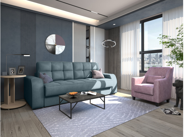Прямой диван Хаммер — комфортабельная модель с безупречным дизайном, который прекрасно подходит для разных интерьерных стилей. Лаконичный облик дополняют декоративная стежка и кант в тон основной ткани. Приспинные подушки и широкие подлокотники позволяют расположиться с максимальным удобством. Шагающий механизм трансформации не портит напольное покрытие и легко превращает диван в широкое ровное спальное место. Увеличенная высота матраса идеально подходит для ежедневного сна и может сравниться по комфорту с полноценной кроватью. Модель оборудована ламинированным бельевым ящиком.