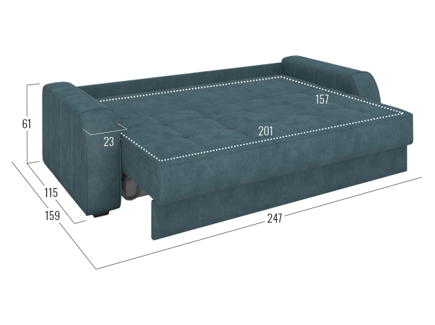 - Посадочное место без подушек (ШхГ): 201 х 88 см.