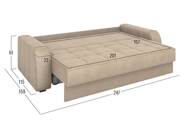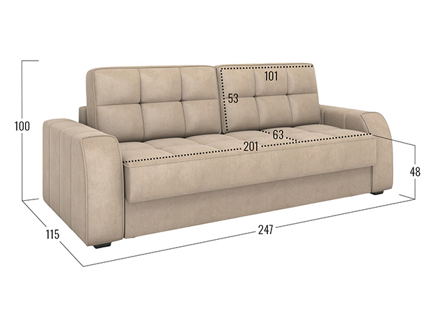 - Посадочное место без подушек (ШхГ): 201 х 88 см.