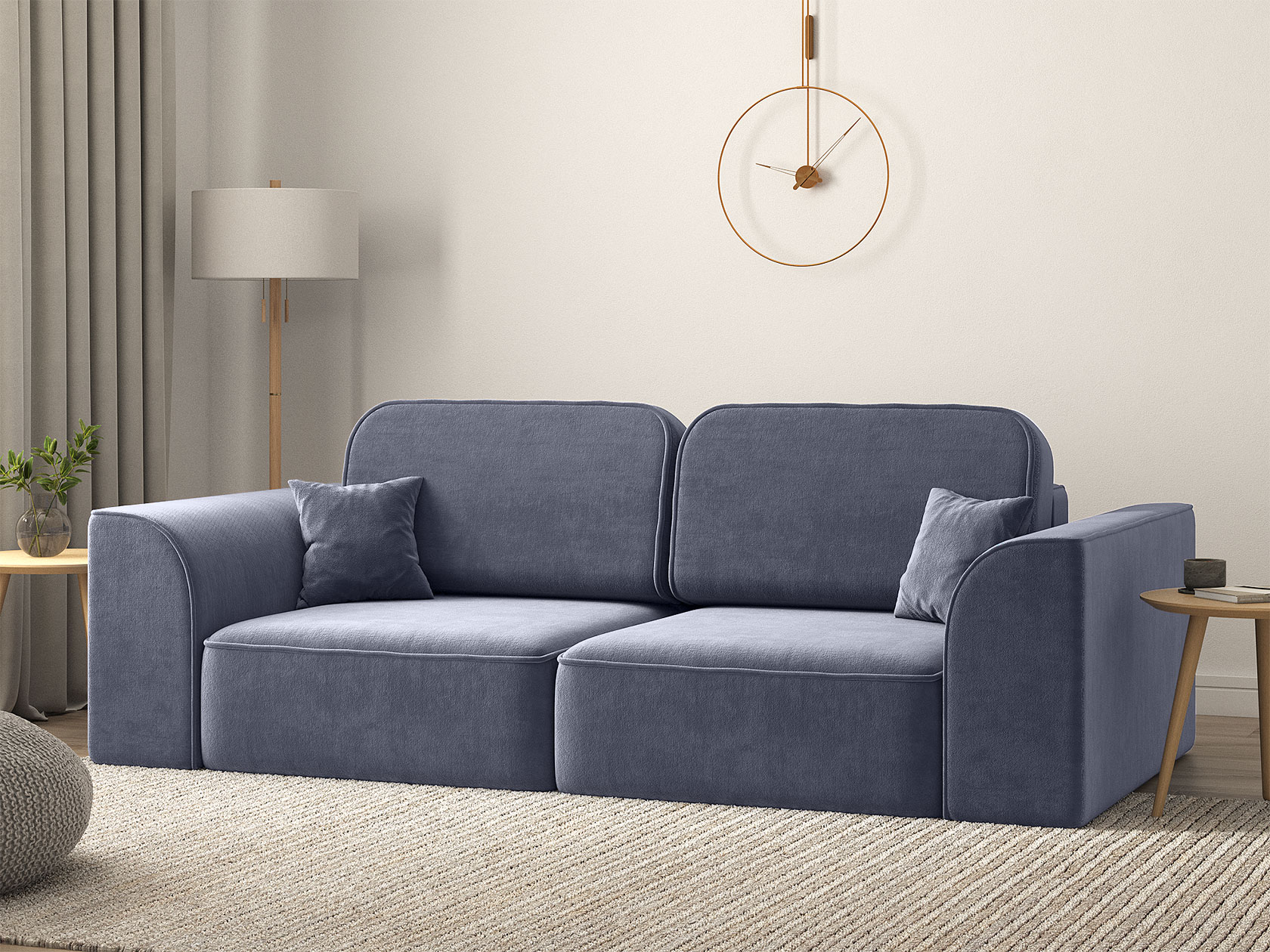 Основательный и очень удобный прямой диван Хилтон выполнен в минималистичном дизайне. Наружные швы на сиденье и боковинах выступают лаконичными акцентами и подчеркивают необычную форму подлокотников. Модель безупречно выглядит со всех сторон, поэтому подходит для зонирования комнаты. Две независимые секции позволяют менять конфигурацию дивана, превращая его в угловую модель, а декоративные подушки — регулировать глубину посадки.