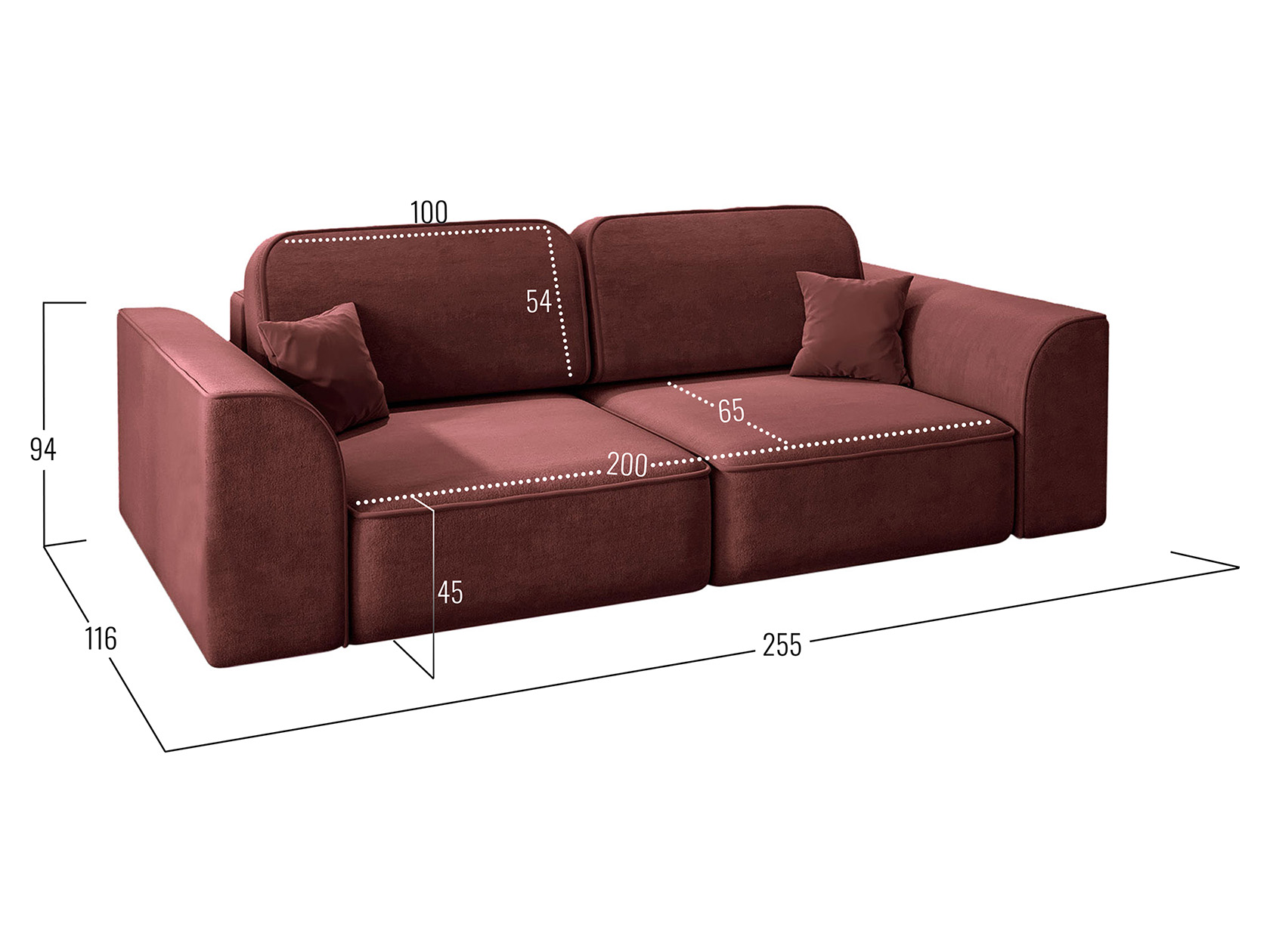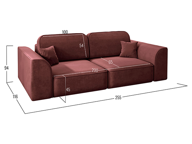 - Декоративные подушки (ВхШ): 34 х 34 см (2 шт.).