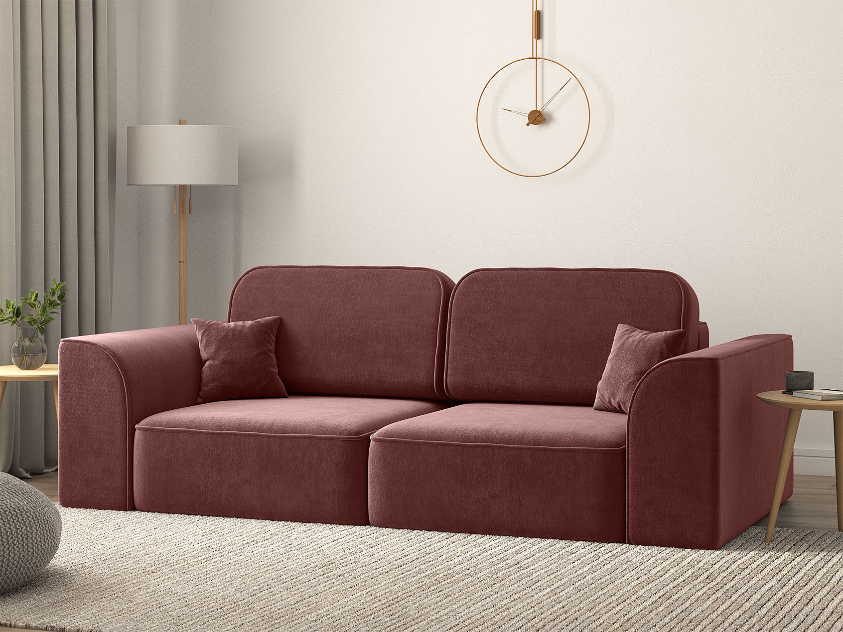 Основательный и очень удобный прямой диван Хилтон выполнен в минималистичном дизайне. Наружные швы на сиденье и боковинах выступают лаконичными акцентами и подчеркивают необычную форму подлокотников. Модель безупречно выглядит со всех сторон, поэтому подходит для зонирования комнаты. Две независимые секции позволяют менять конфигурацию дивана, превращая его в угловую модель, а декоративные подушки — регулировать глубину посадки.