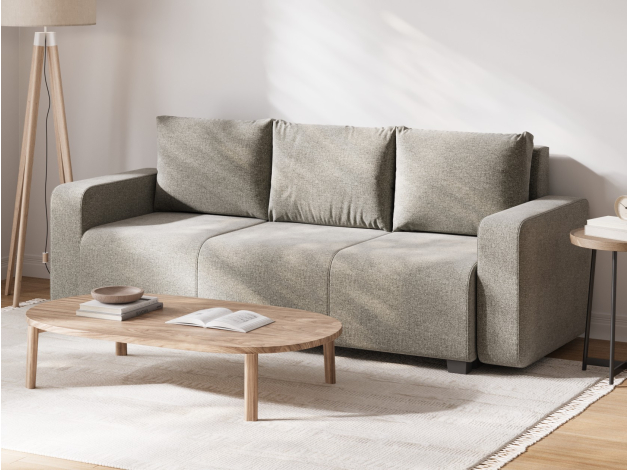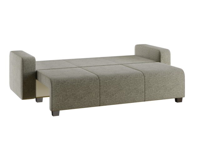 В разложенном виде образуется ровная и комфортная для сна поверхность. В основании предусмотрен просторный короб с двумя отсеками, что делает диван еще практичнее и создает дополнительные ниши для хранения вещей.