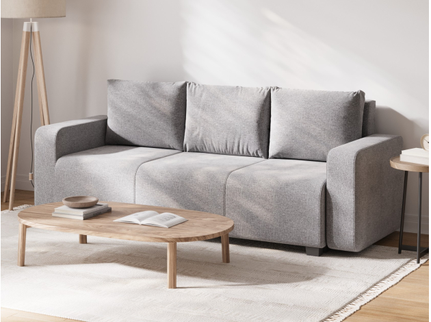 Прямой диван Идрис прекрасно подойдет для мультифункциональной комнаты. Днем модель послужит местом для отдыха, а ночью превратится в удобную кровать. В дизайне сделан акцент на идеальную симметрию, плавность линий и объемные формы. Спинка выполнена в обивочной ткани, поэтому диван можно установить не только вдоль стены, но и по центру гостиной.