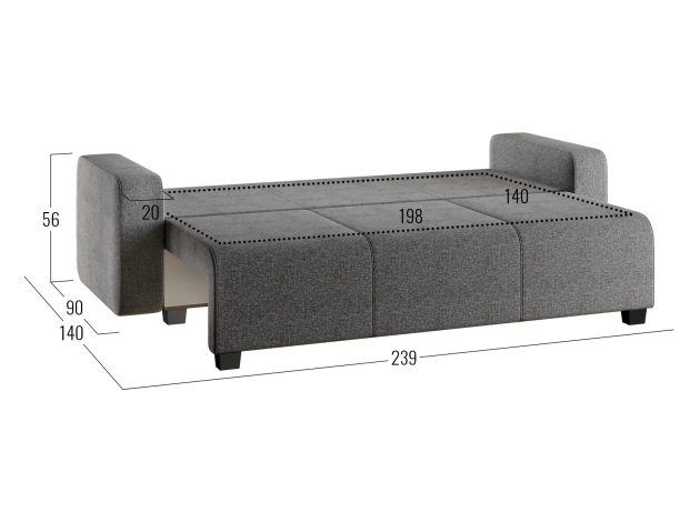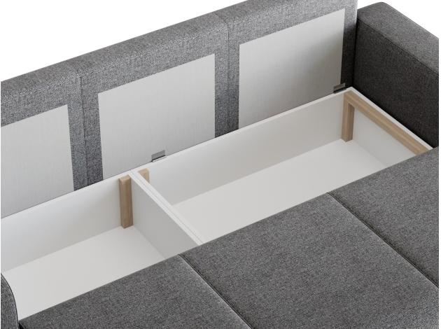 В разложенном виде образуется ровная и комфортная для сна поверхность. В основании предусмотрен просторный короб с двумя отсеками, что делает диван еще практичнее и создает дополнительные ниши для хранения вещей.