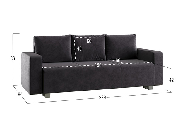 Прямой диван Идрис прекрасно подойдет для мультифункциональной комнаты. Днем модель послужит местом для отдыха, а ночью превратится в удобную кровать. В дизайне сделан акцент на идеальную симметрию, плавность линий и объемные формы. Спинка выполнена в обивочной ткани, поэтому диван можно установить не только вдоль стены, но и по центру гостиной.
