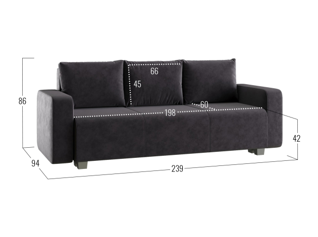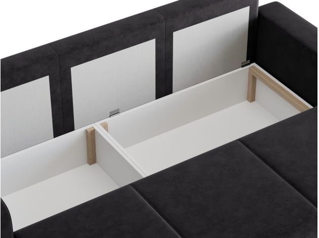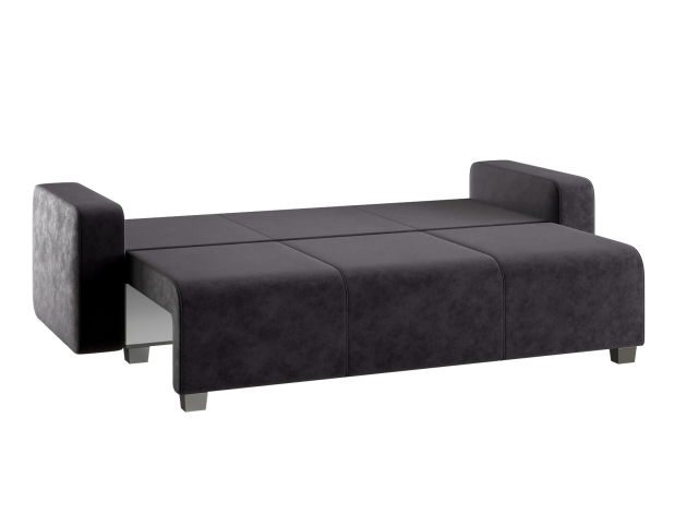 В разложенном виде образуется ровная и комфортная для сна поверхность. В основании предусмотрен просторный короб с двумя отсеками, что делает диван еще практичнее и создает дополнительные ниши для хранения вещей.