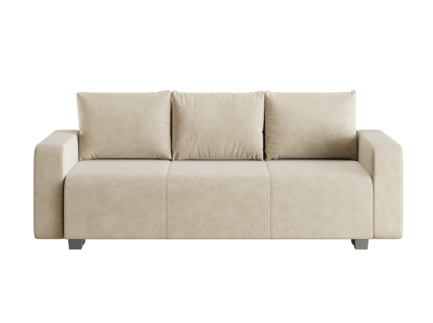 Прямой диван Идрис прекрасно подойдет для мультифункциональной комнаты. Днем модель послужит местом для отдыха, а ночью превратится в удобную кровать. В дизайне сделан акцент на идеальную симметрию, плавность линий и объемные формы. Спинка выполнена в обивочной ткани, поэтому диван можно установить не только вдоль стены, но и по центру гостиной.